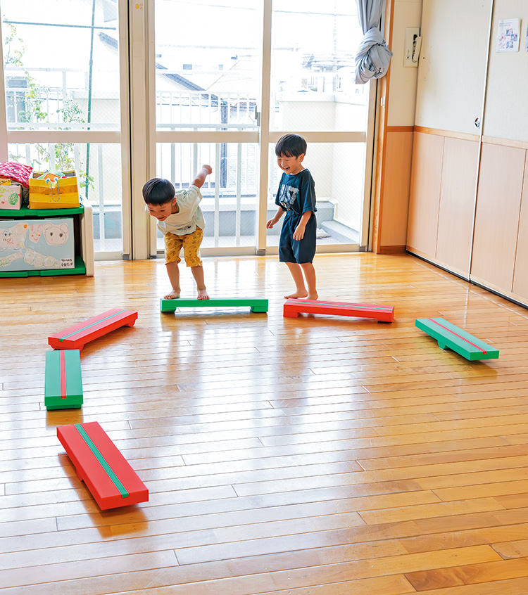 しかけがかくれています。慎重に歩いて動どっしりボード×2本かったんボード×2本きを確かめます。
