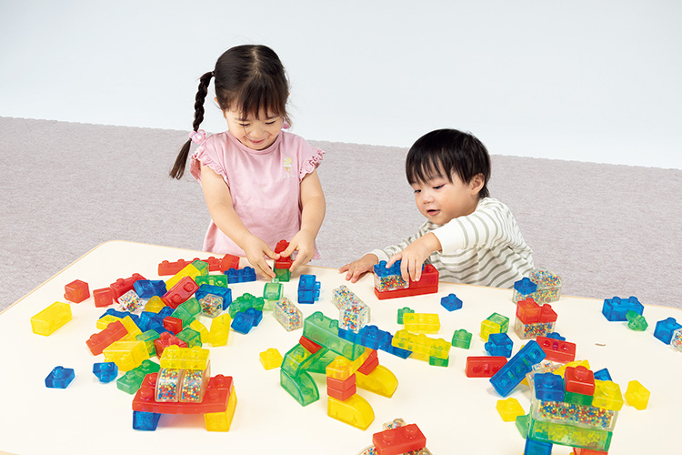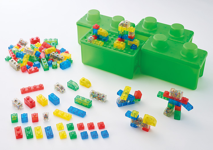 ●対象年齢:2歳~ ●セット内容:4ケース組(1ケース30ピース)●材質:熱可塑性ゴム●寸法:小ブロック=3×3×2.5cm ケース=34×17×22cm●重量:合計6kg※お手入れは40℃くらいまでのお湯でしっかり洗ってください。アルコール消毒可。