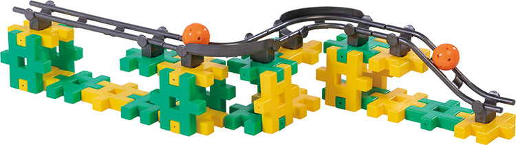 専用レールをブロックに取り付けることでニューブロックの大きさを生かしたダイナミックなコースを作成できます。