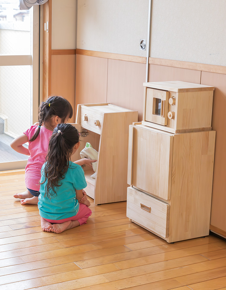 • あたたかい木目の家具でままごとコーナーを演出します。
