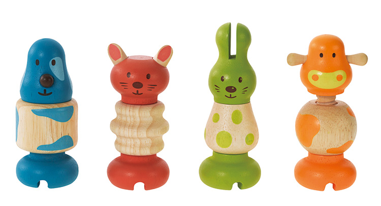 ネジを締めたり緩めたりして、動物をくっつけたり離したりすることができます。4種類のカラフルな動物は、子どもに興味・関心を持たせます。