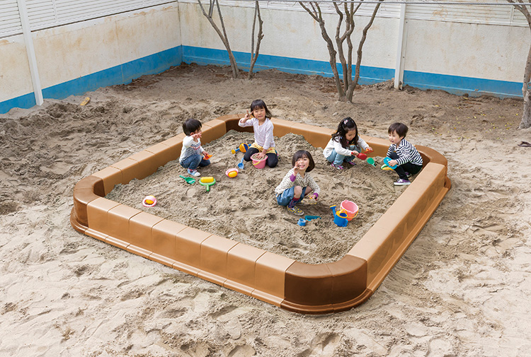 インジェクション成型の砂場枠です。重ねて連結するため砂が漏れにくい構造となっています。
