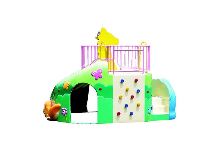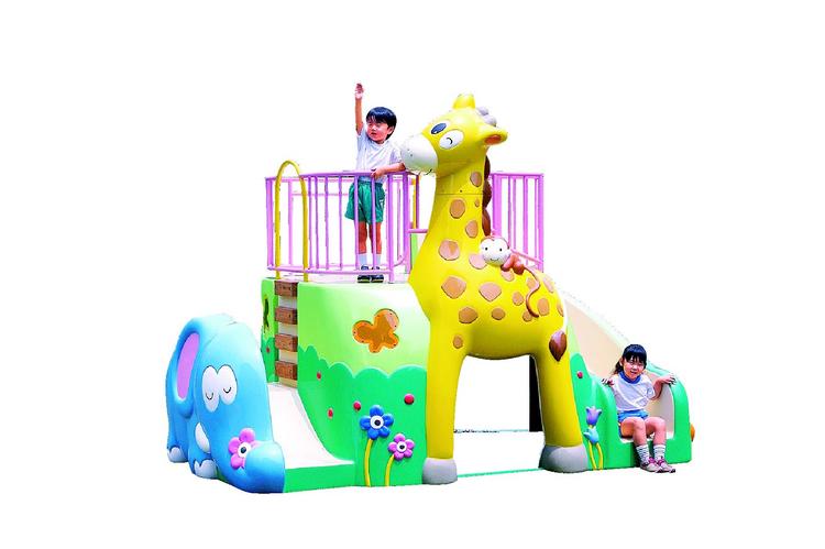 ゆかいな動物たちがいっぱいの園庭遊具です。2・3歳児が遊べるぞうさん滑り台、4~6歳児用の高い滑り台、ワニさんのベンチ、きりんさんの足をくぐれば広い空間があり、遊びが終わればそこは