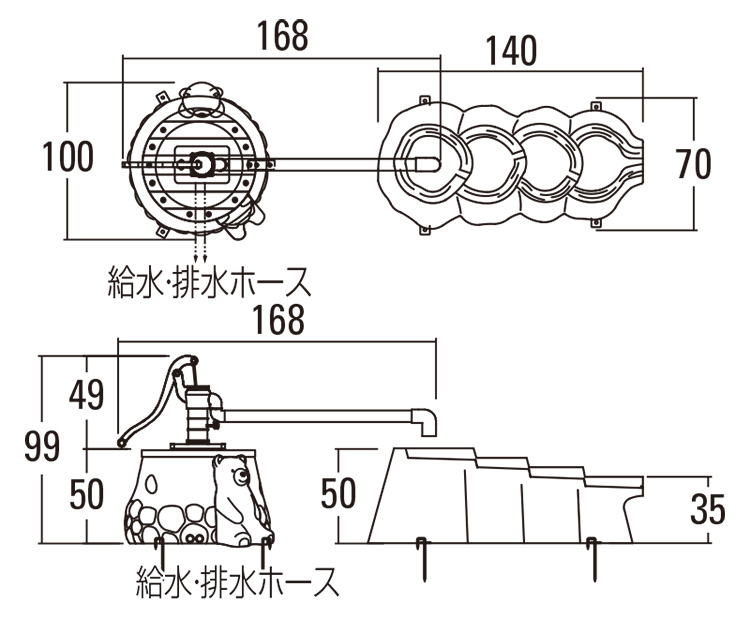 ●材質:本体=FRP パネル=樹脂 板材=木製 ポンプ=鋳物製