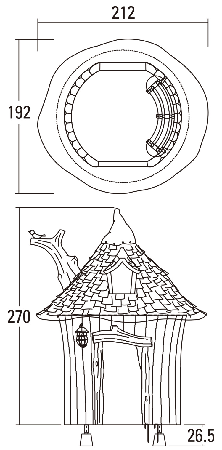 絵本から飛び出したようなとんがり屋根が特長の遊具です。