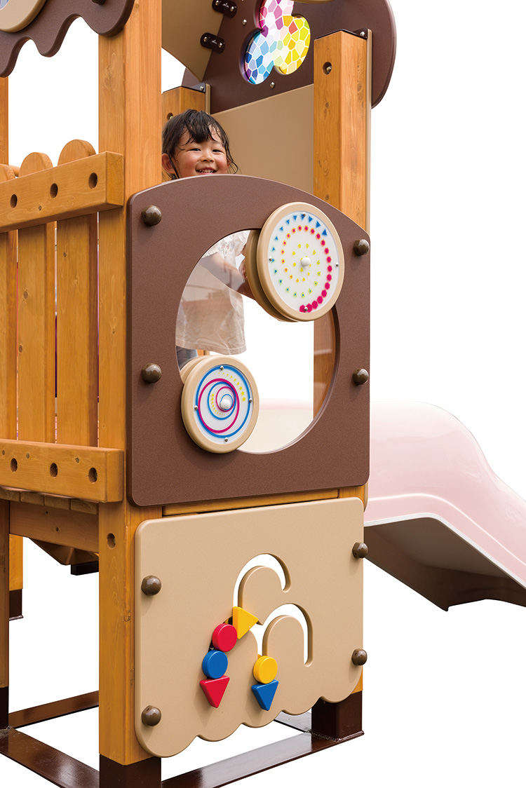 色遊びをテーマに様々な遊びのアイテムを取り込んだ低年齢児遊具です。