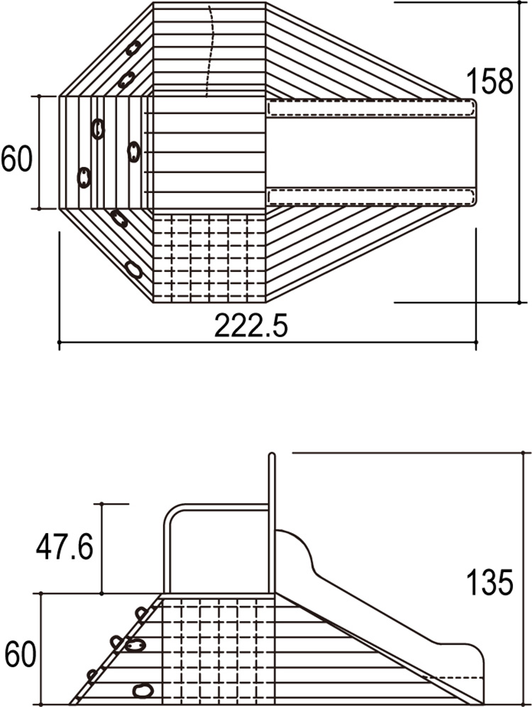 ●材質:杉・スチール・FRP・不飽和ポリエステル樹脂・クレモナ製ロープ