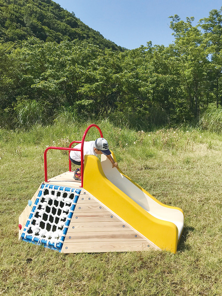 小さい子どもたちがクライミング、ロープ登り、ネット登りなどいろいろな登り方ができる遊具です。