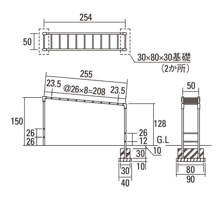 ●寸法:250×50×150cm