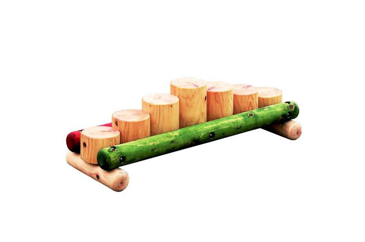 丸太が階段式になっています。1歩1歩高さが変わる運動は、バランス感覚を養います。※アスレチック遊具に使用する木材は自然のものを使っているため、乾燥により割れが生じることがあります。