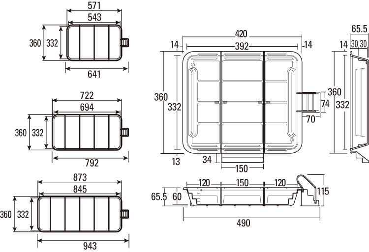 分解して積み重ねると、コンパクトな寸法になります(UP-3型=152×363×高さ111cm)。各ユニットは同規格なので、積み重ねる順番に悩むこともなく、また安定性よく、コンパクトに収納できます。