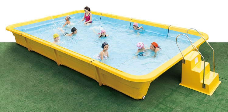 プールの内側全周に、ノンスリップパターン加工のステップが付いています。特に手すり付ステップが付くサイドは2段で、3・4歳児の利用にも安全です。