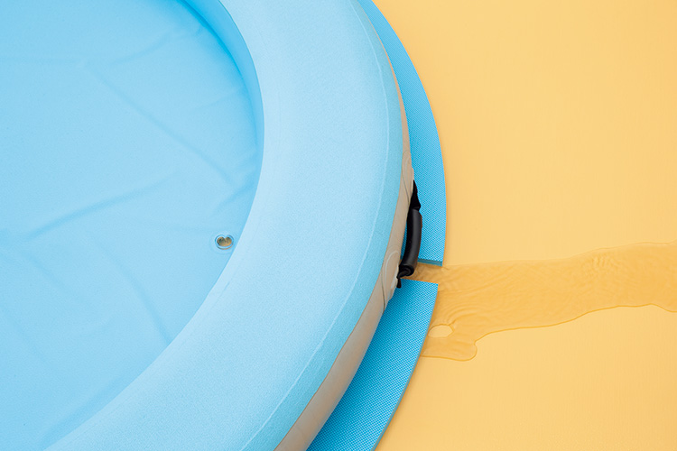 縁部分の高さが15cmと低いので低年齢児から自由に出入りして遊べます。縁部の幅が20cmあり、縁に座って水遊びができます。縁部分、底部はノンスリップ仕様で安心です。たたんで小さく収納袋に入ります。空気注入ポンプはダブルアクション式で約2分で空気が入り、約1分で抜くことができます。