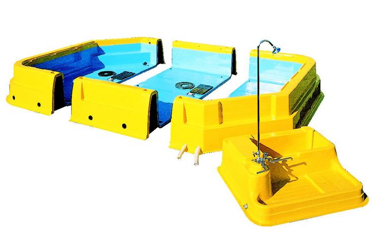 各ユニットに使っている、防水シールの耐久性は約1年です。翌シーズンは、防水シールを新しくしていただくよう、お願いします。便利な水深目盛り付(10cm毎)