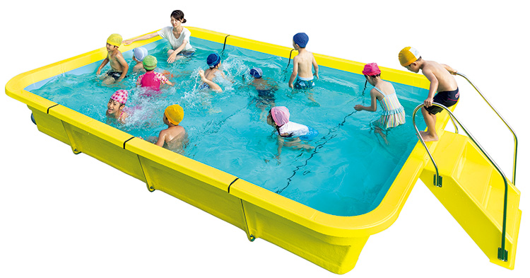 ④プールの内側全周に、ノンスリップパターン加工のステップが付いています。