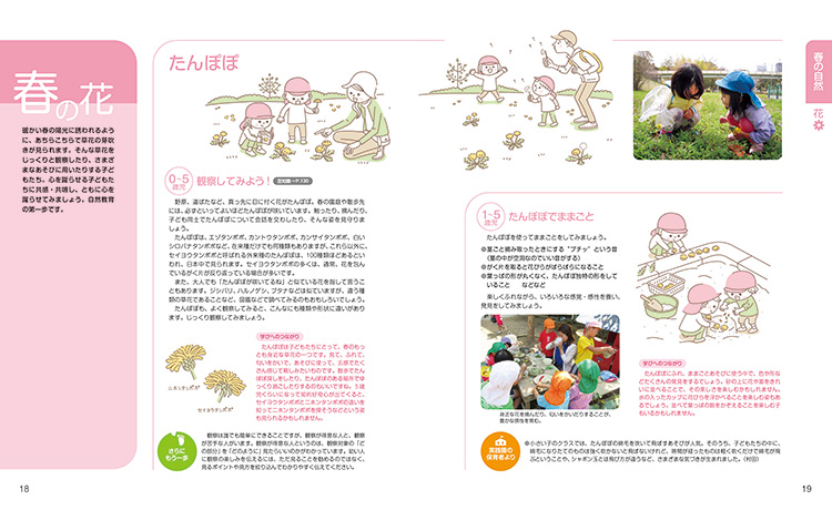 • 春・夏・秋・冬のあそび、自然に関する保育環境のアイディア集。子どもたちが、「いのち」を慈しみながら、自然に親しむヒントがいっぱいです。