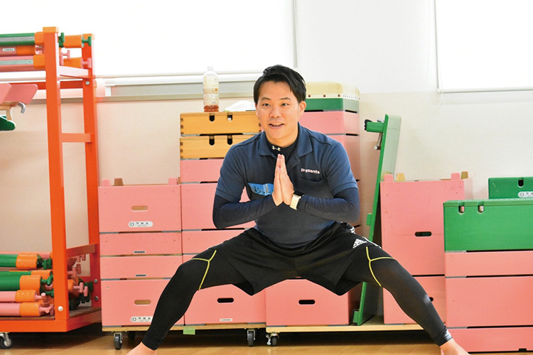遊び方を教えてくれたのは NPO法人Presents 押川武将先生 理学療法士。普段は整形外科に勤務しながら、幼稚園、保育園、こども園等で子どもの身体の発達に効果的な巧技台の使い方について、講師も務めています。 -