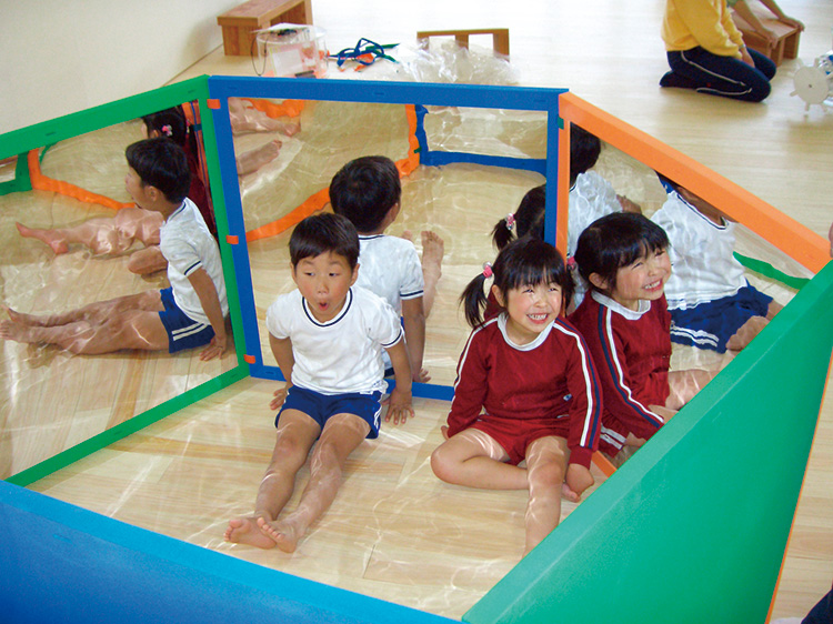 やわらかい素材土台と割れないミラーでできています。鏡に映る姿の変化を楽しむことができます。
