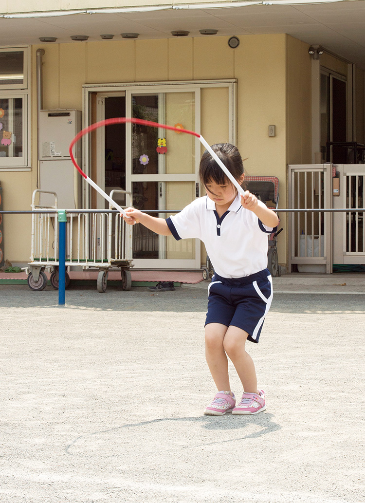 60-71256-016縄跳びの苦手な子どもたちのために、グリップを長くしロープがたるまないように開発された縄跳びです。
