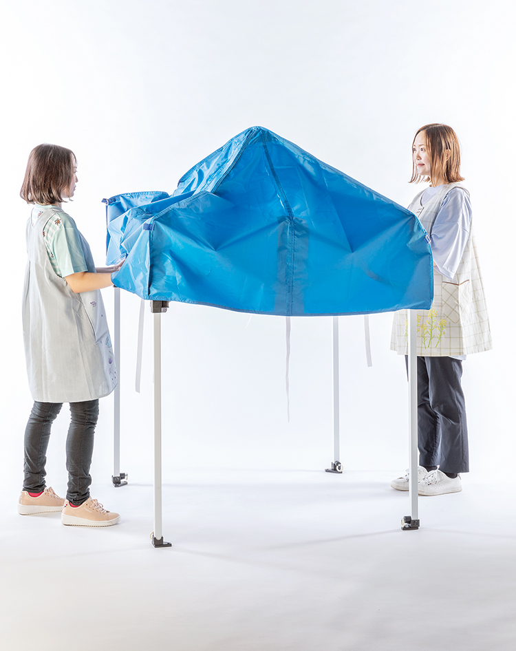 別売の三方幕を取り付けることもできます。 ※写真使用例は全て1.2×1.2m。 -