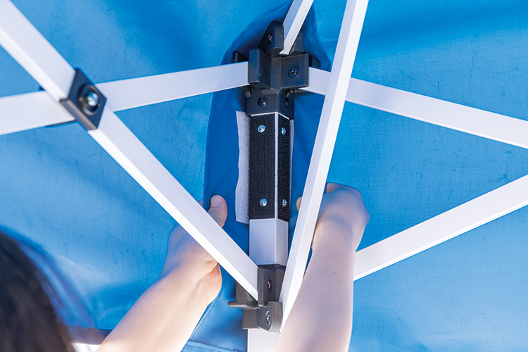 3.内側からフレームに天幕を固定 -