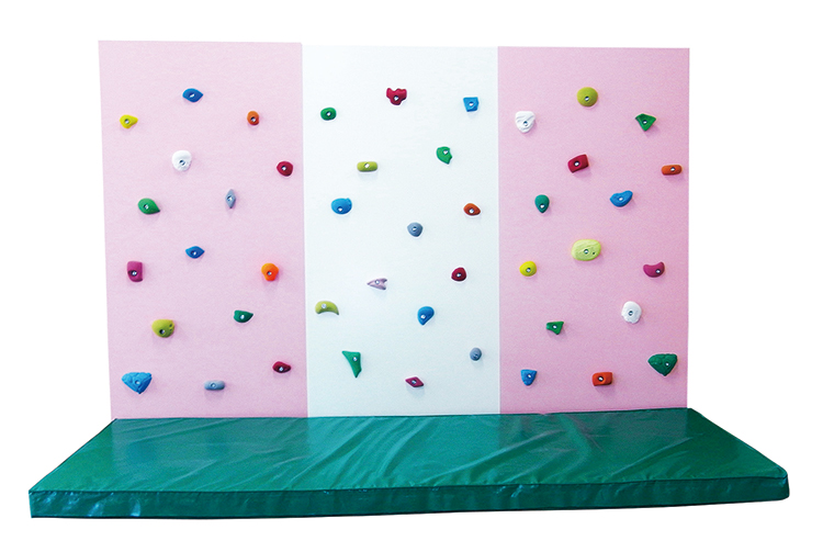| 体全体のバランスを向上させるクライミング。表面は白とピンクの組み合わせです。ホールドは多種類の異形品ですので、取り替えまたは向きを変えるだけで難易度が変わります。 |