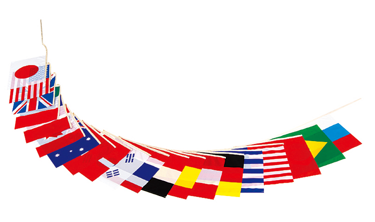 風の影響を受けにくい横型タイプの万国旗です。国の識別もしやすくなっています。