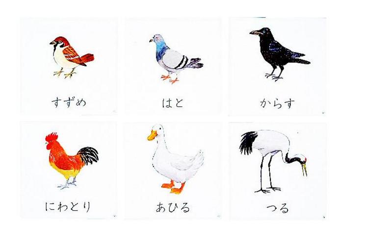 | 4 | とり | はと、からす、にわとり、すずめ、つる、あひる |