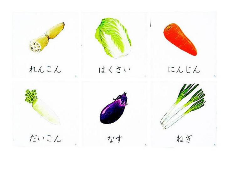| 5 | やさい | なす、だいこん、にんじん、れんこん、はくさい、ねぎ |