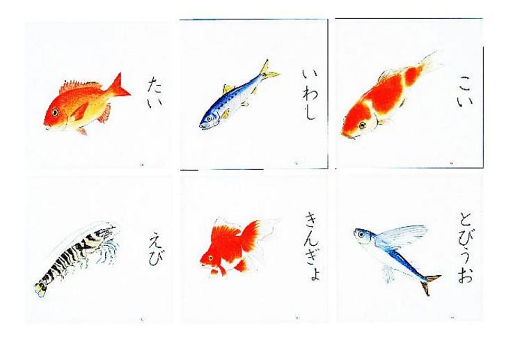 | 6 | さかな | たい、こい、とびうお、えび、きんぎょ、いわし |