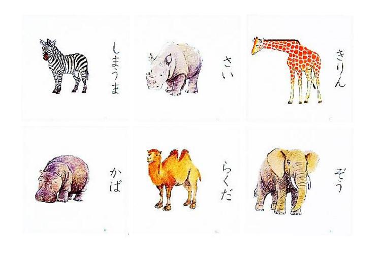| 10 | あついくにのどうぶつ | ぞう、しまうま、かば、きりん、さい、らくだ |