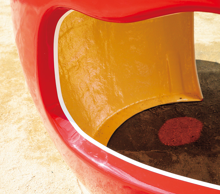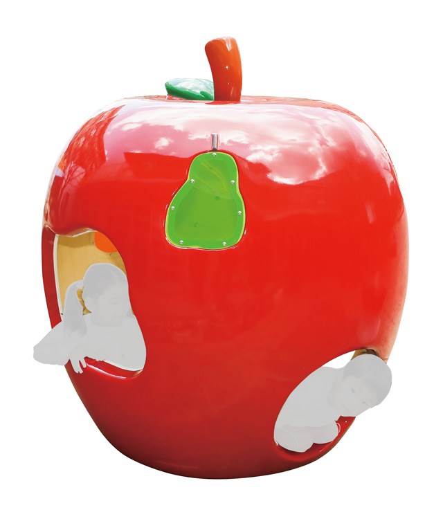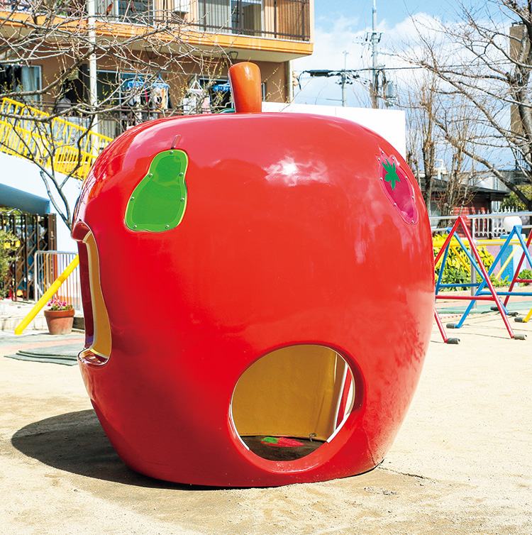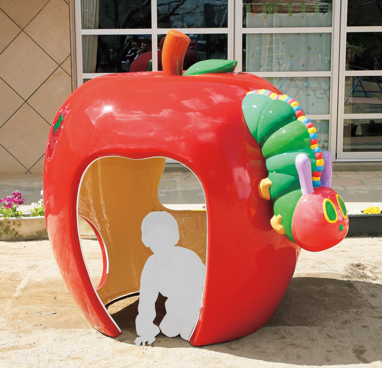 はらぺこあおむしの世界を表現したFRP製のハウスです。りんごを食べたあおむしが、半分外に出ているかわいいデザインになっています。