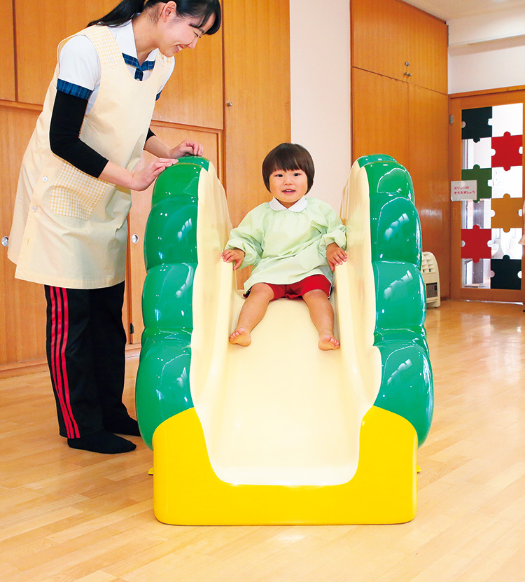 はらぺこあおむしの小さなすべり台です。踊り場の高さは45cmで、低年齢児でも使える高さになっています。