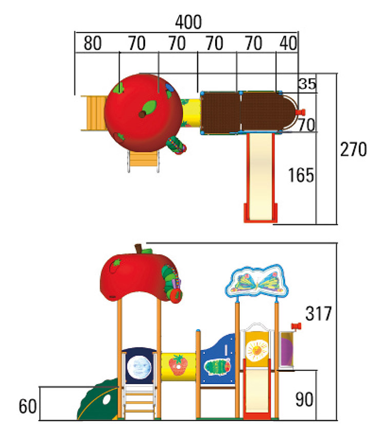 はらぺこあおむしの絵本の世界観を体験できる総合遊具です。