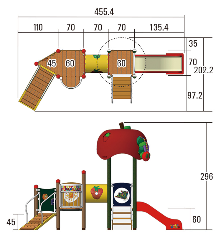 フル= 滑り台・階段・垂直クライミング・つり橋・丸太はしご・くるくるポール・ベンチ