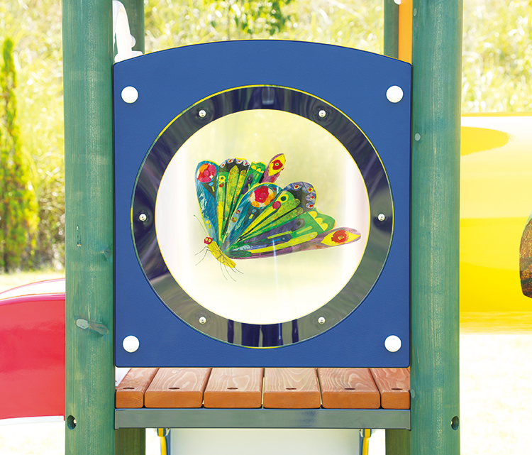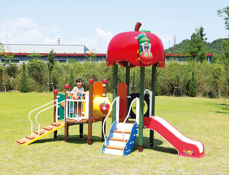 はらぺこあおむしの世界に自然の温もりを感じる木製の遊具が新たに登場。