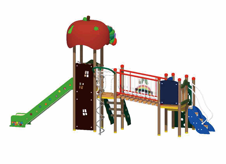 はらぺこあおむしの世界に自然の温もりを感じる木製の遊具が新たに登場。