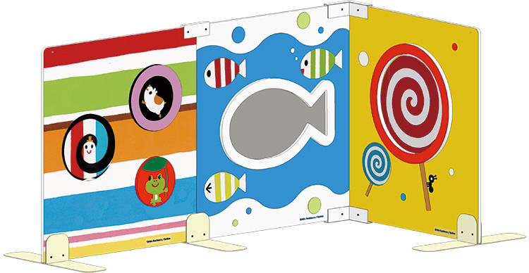 ●重量:パネル本体(①ぐるぐるまわるパネル=約2.3kg ②おさかなミラーパネル・③ペロペロキャンデーパネル=約2.1kg) 脚=0.65kg/セット