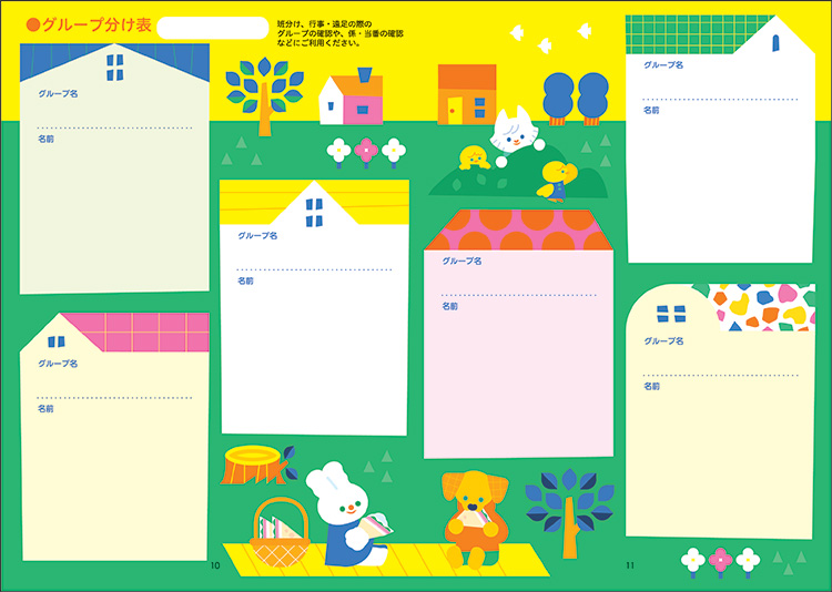 お誕生日表やグループ分け表などが入っていて、保育現場で使えるダイアリーです。