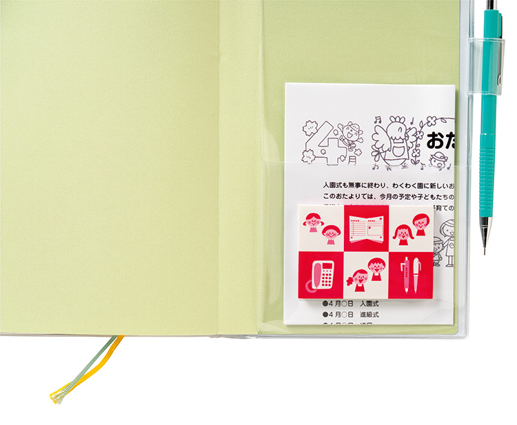 メモや付箋などが入るポケット付カバー! ※メモや付箋は商品に含まれません。