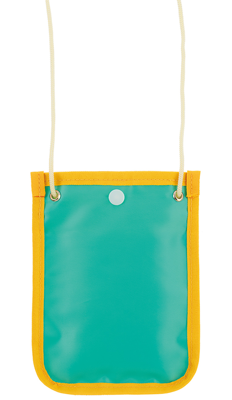 メッシュポケットの付いたサコッシュです。本体にはスナップボタン付なので、中身が飛び出すことがありません。肩掛けひもには安全セパレーター付。