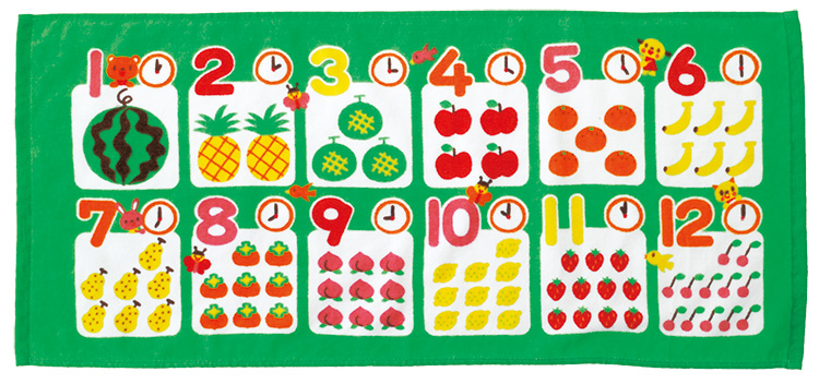 かわいいイラスト入のすうじ表のフェイスタオルです。肌触りがよく、しっかりした生地です。名まえ記入欄付 袋入