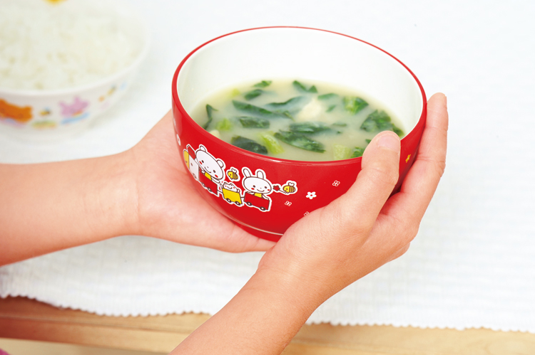 子どもの手にぴったりの大きさのお椀です。おちゃわんとお揃いの絵柄です。化粧ケース入