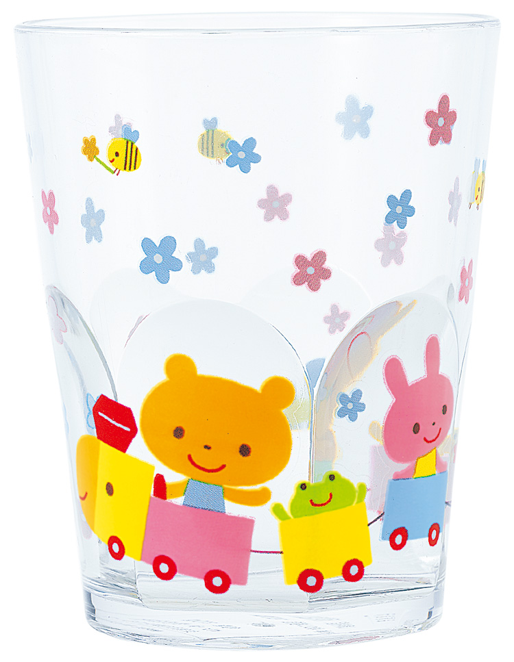 透明で涼しげなアクリルコップです。かわいい汽車のイラストが入っています。化粧ケース入