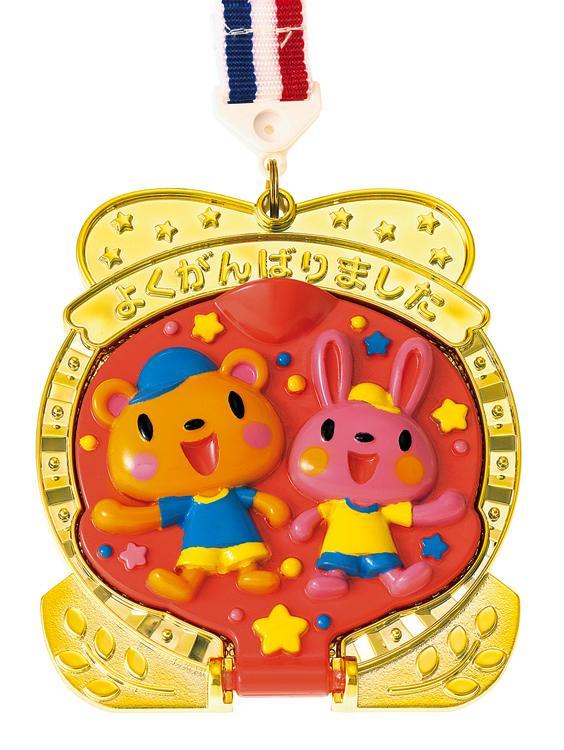 元気なくまさんとうさぎさんのレリーフがかわいいメダルです。キャラクター部分をくるっと回せば、フォトフレームになります。