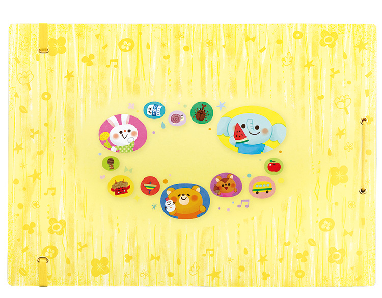 裏側にもかわいいイラスト入! 作品をしっかり留められるゴムバンド付作品をはさんでいくと、すてきな作品集になります!