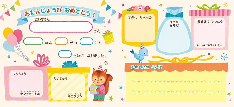 • 成長の記録やお祝いのことばを書き込めます!