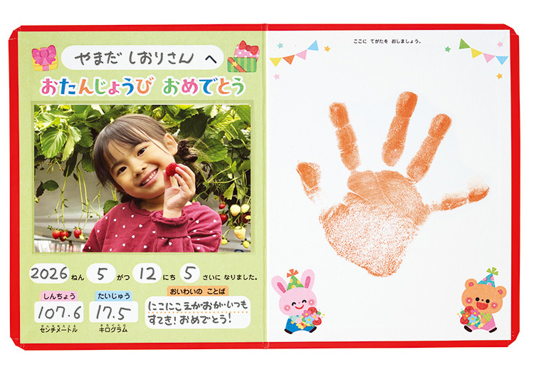 • 丈夫な合紙製なので、写真や手形、成長の記録を大切に残せます。