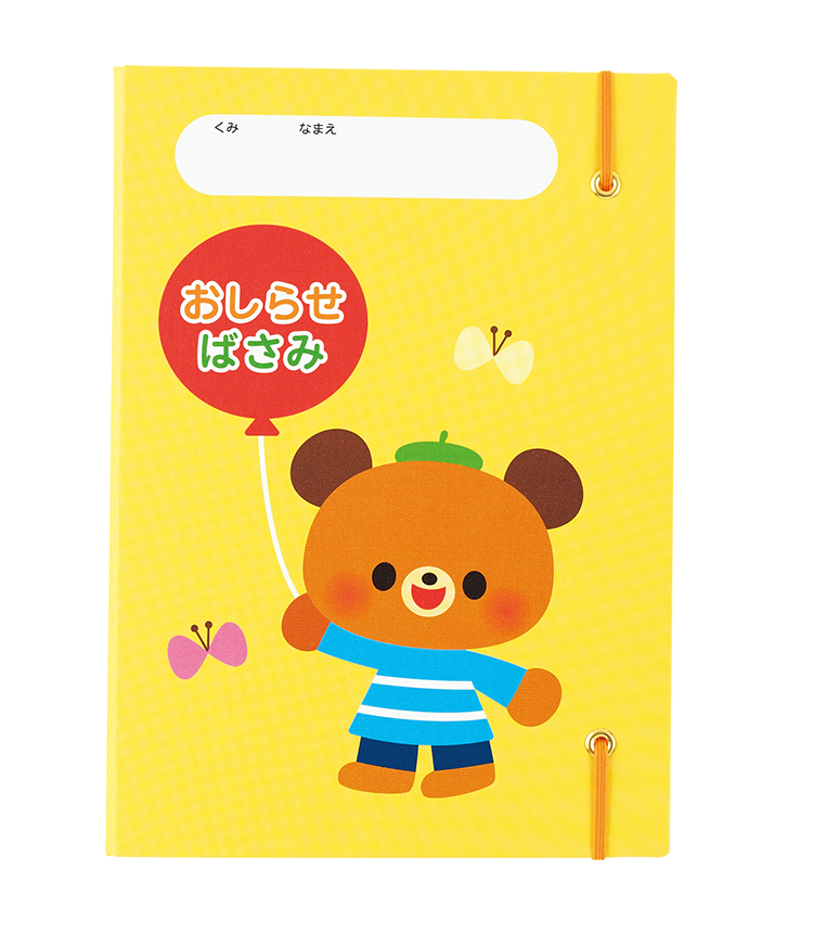 寒冷地の冬場でも固くならない布製です。ゴムバンド付でおしらせをしっかり留められます。上部に名まえ欄付。B5サイズのおしらせ二つ折りに対応。