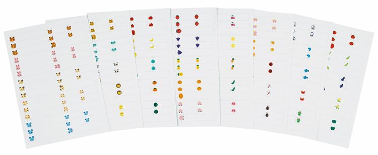 破れにくい素材のシールです。さまざまな用途に使えます。シールの絵柄は40種類で、横書き用、縦書き用の両方が入っています。シート8枚入。